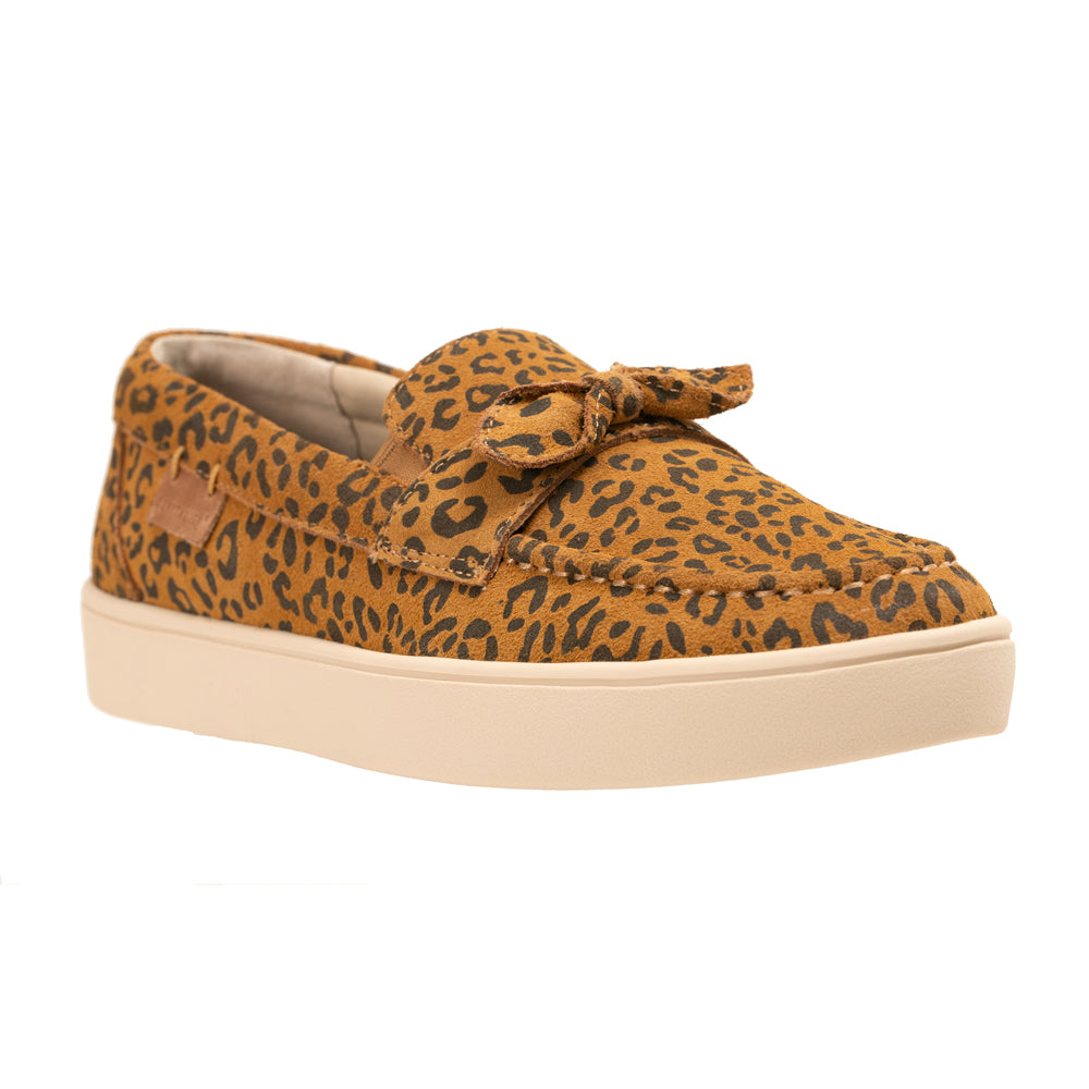 - Gorgeous 4-season suede sneaker featuring solids or a fun leopard pattern with a decorative pinched bow
