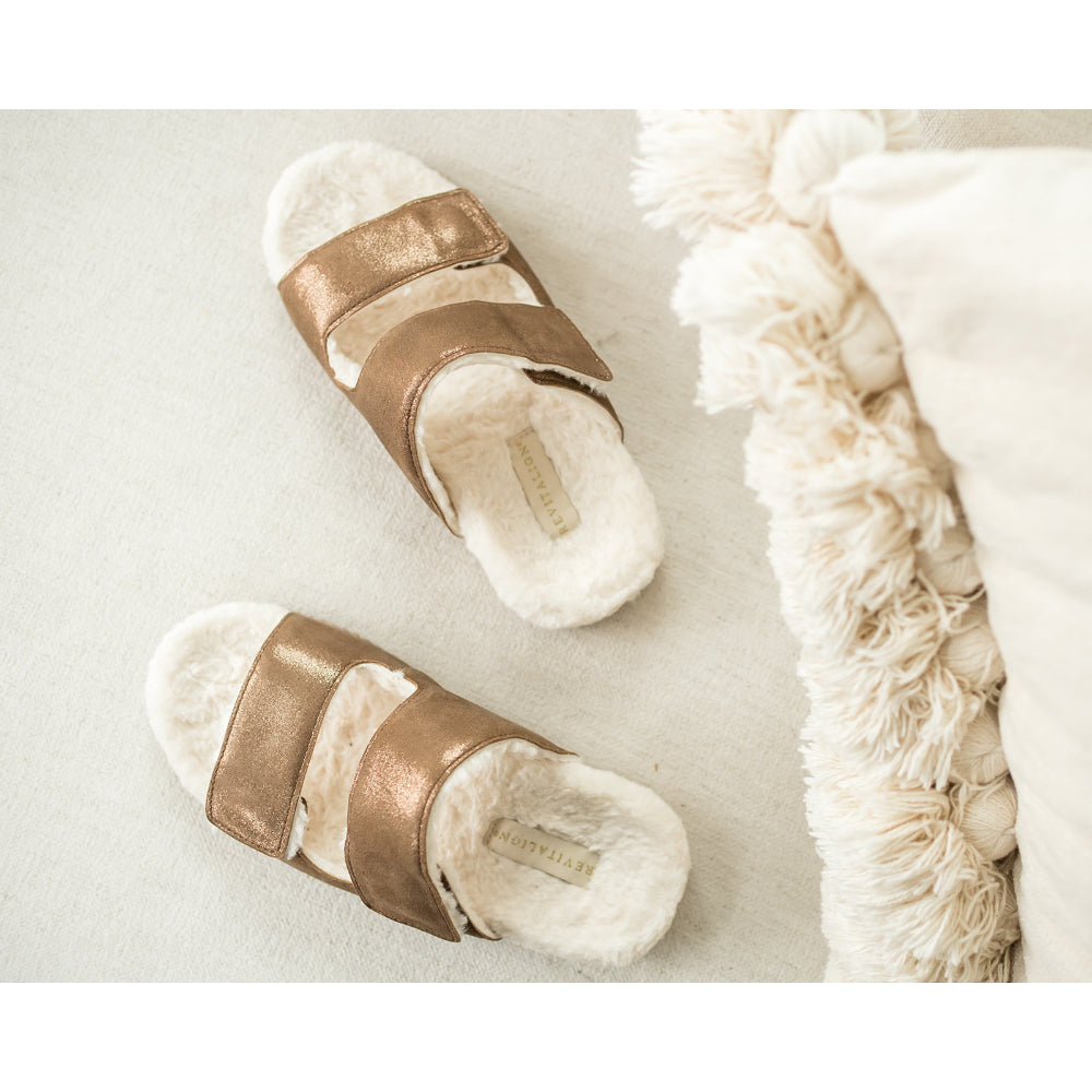 - Soft leather for a comfortable 4 season scuff slipper in timeless neutral colors