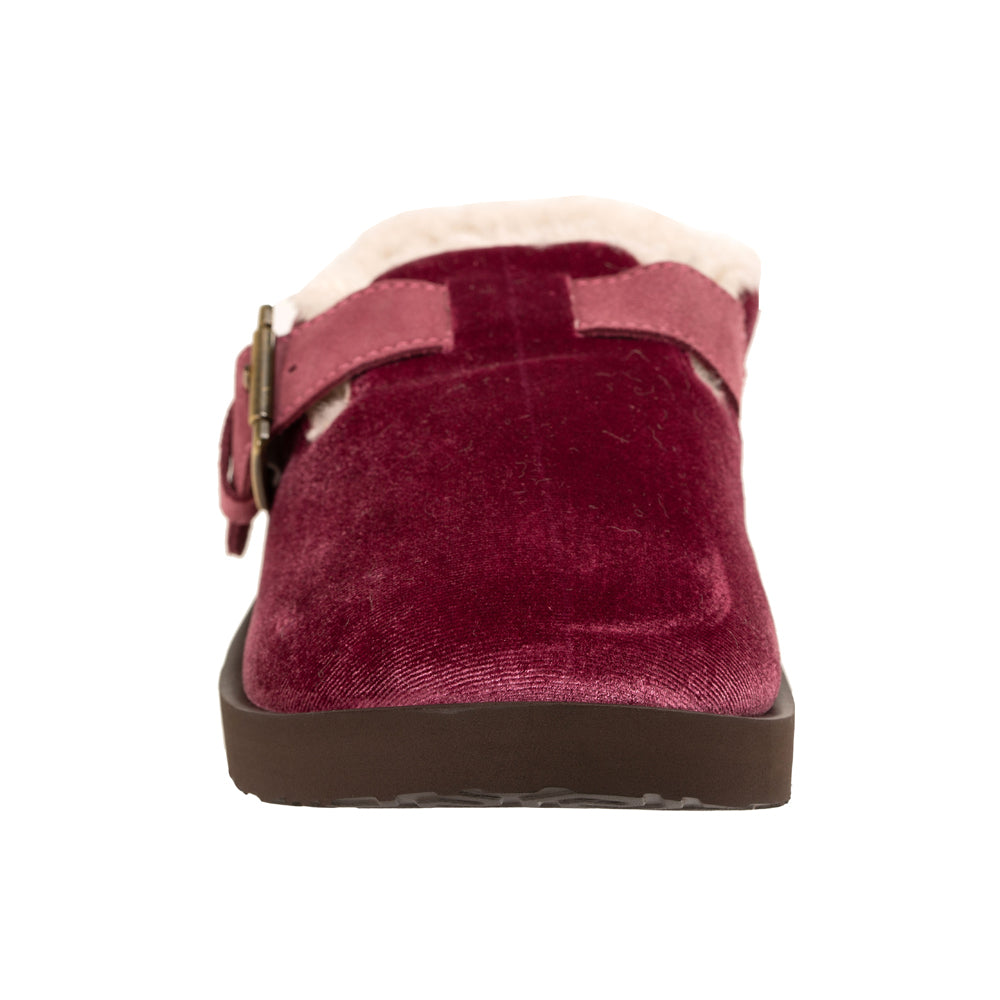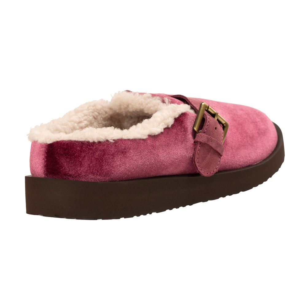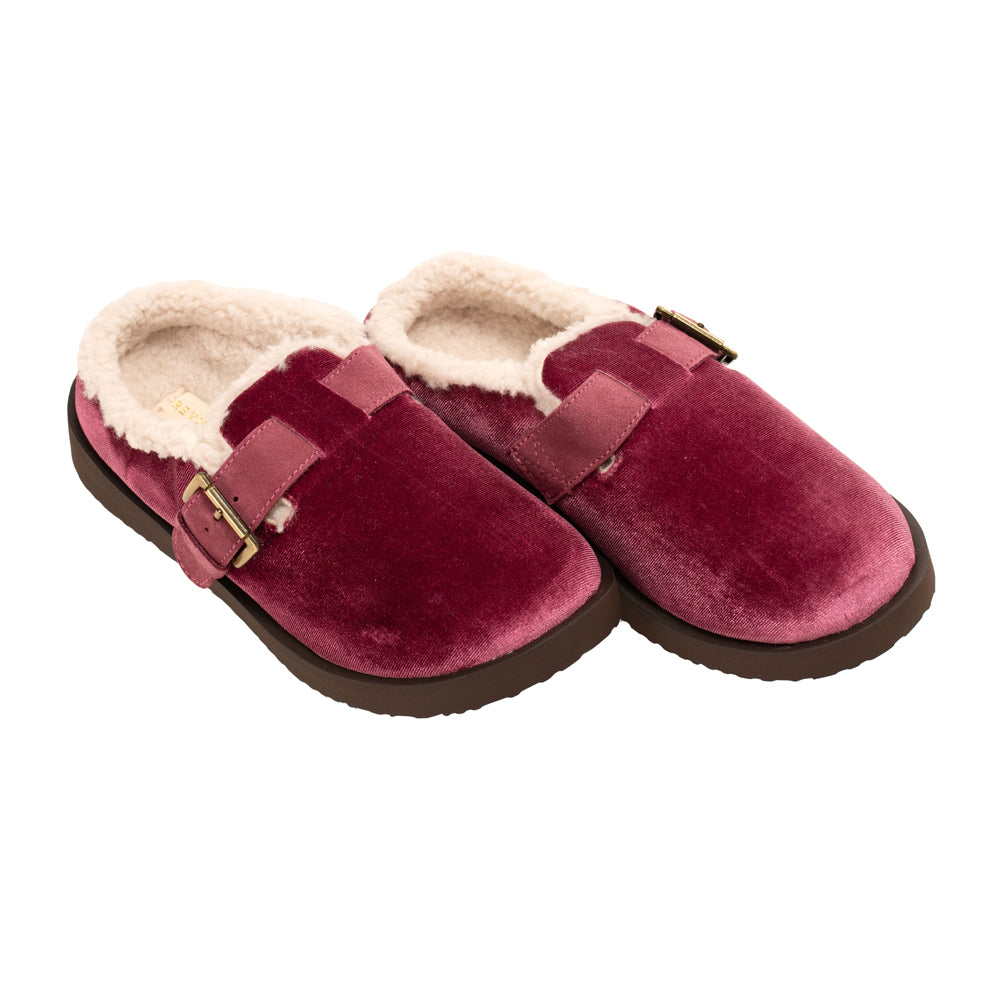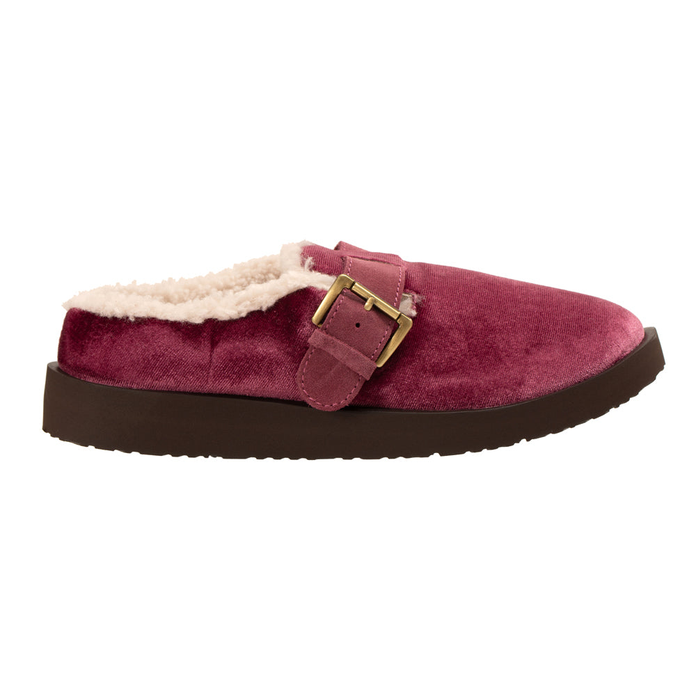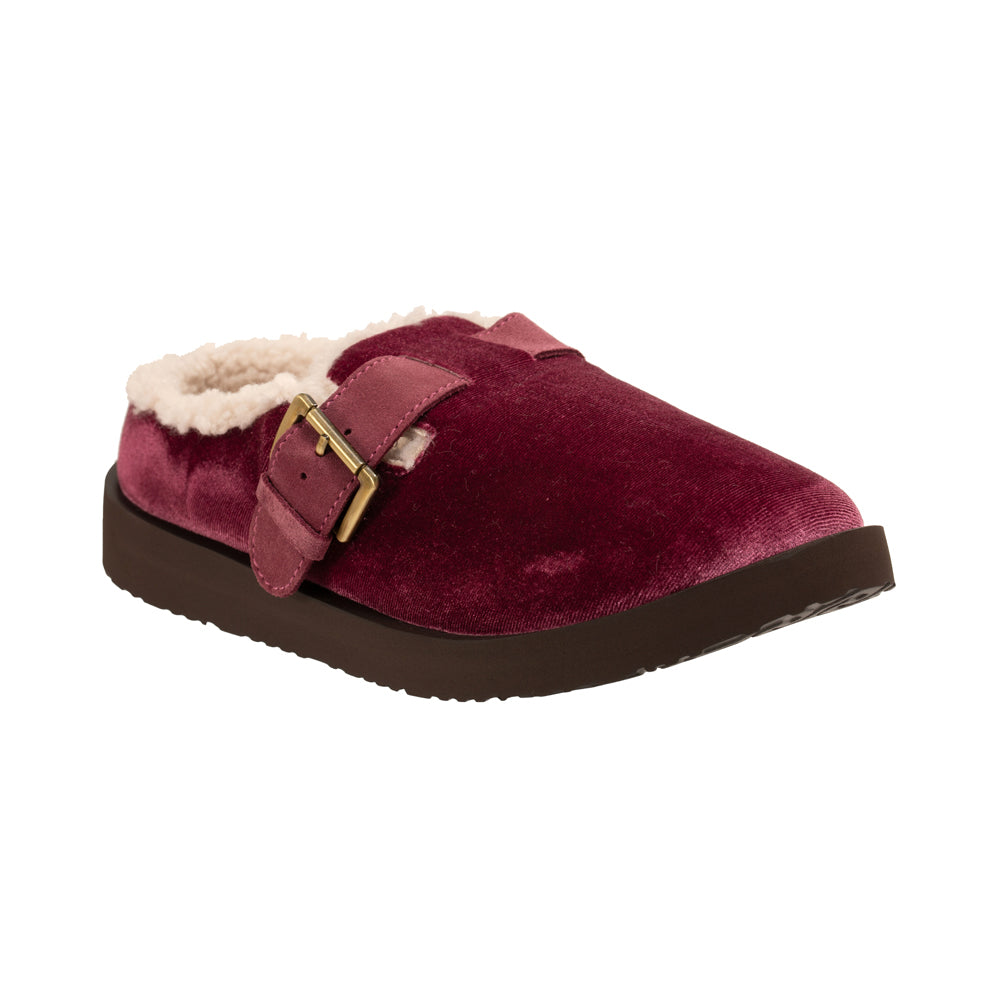 - Year round slipper in velvet or playful plaid with genuine suede adjustable strap