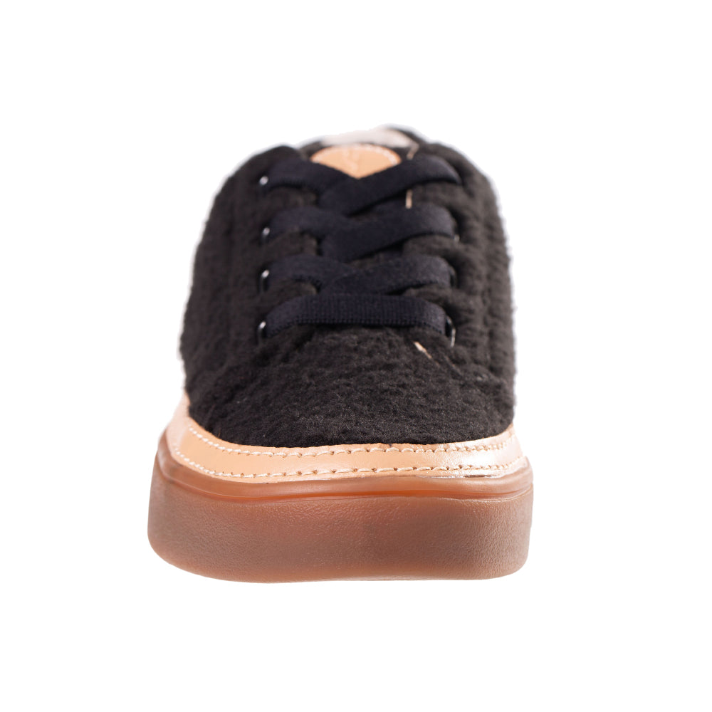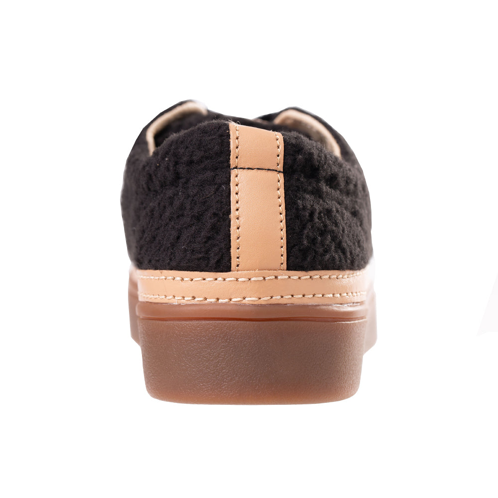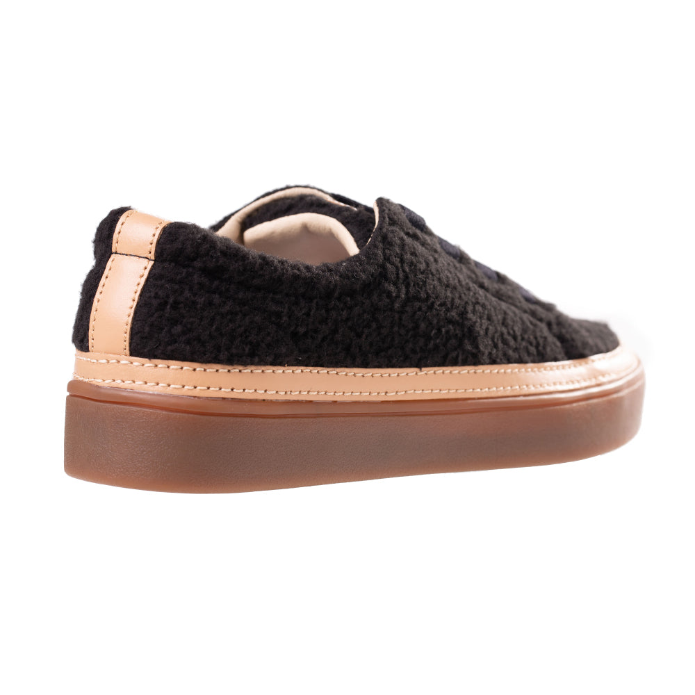 • Super soft and cozy teddy fur is trimmed with leather accents