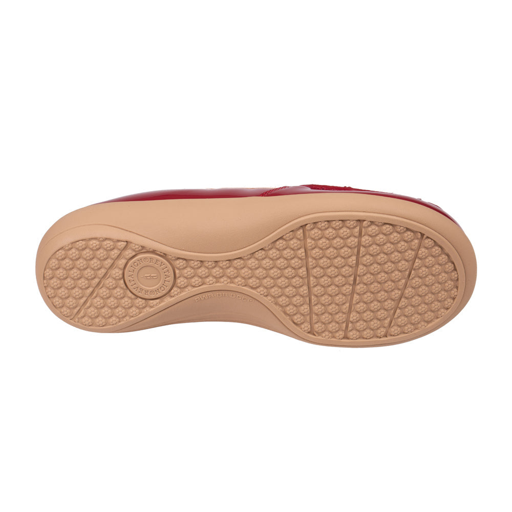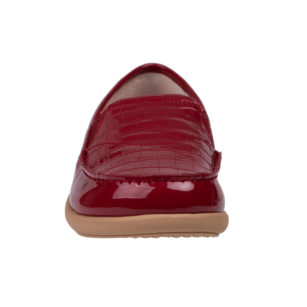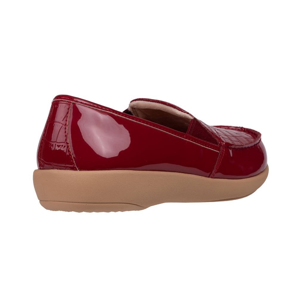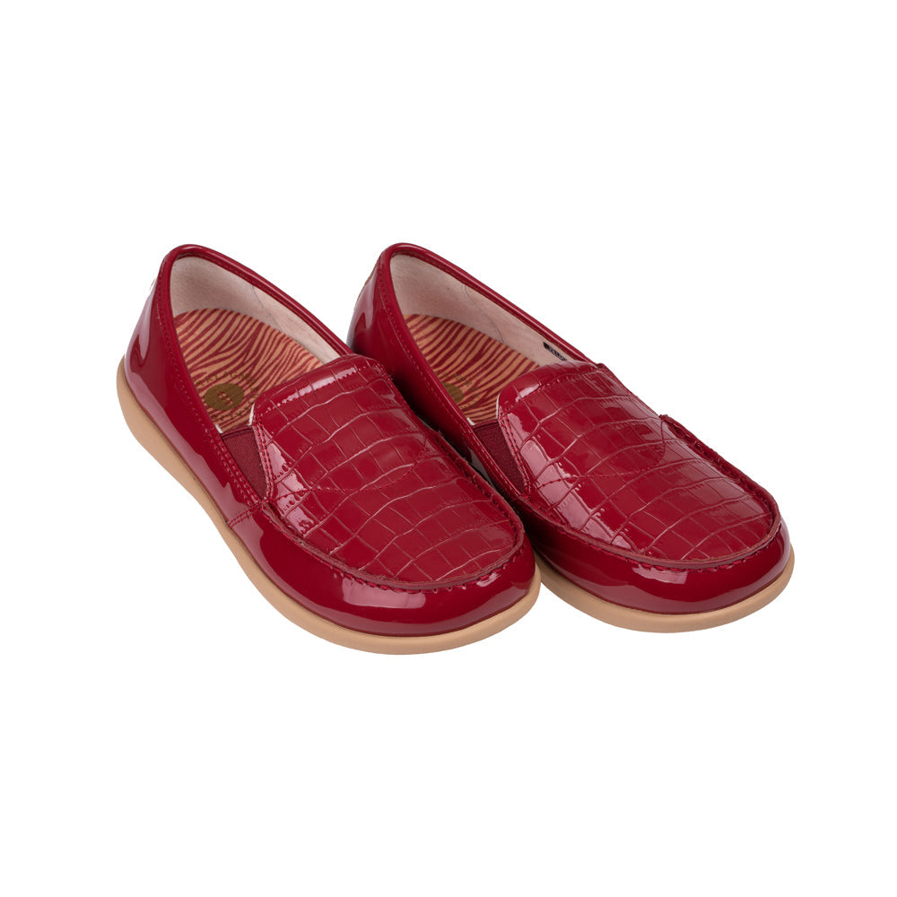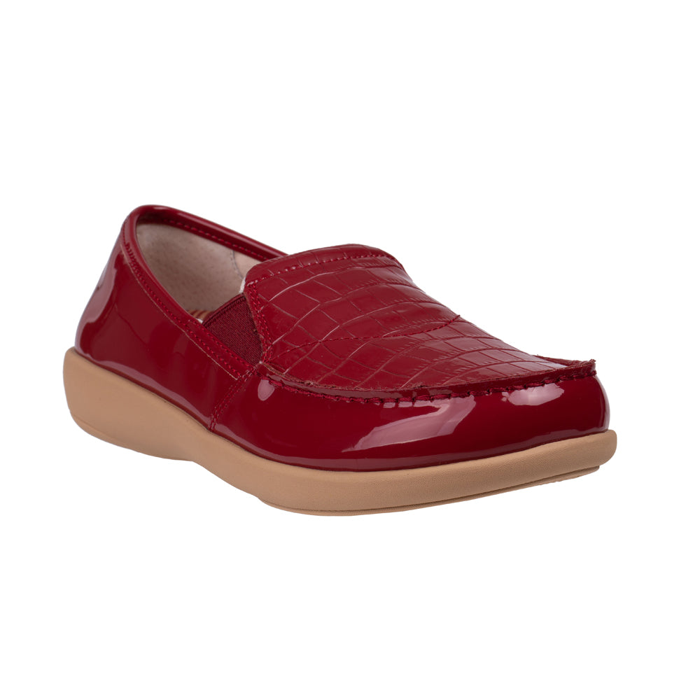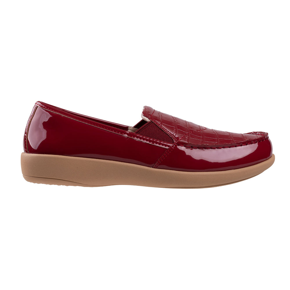 - Casual slip-on kick-off styling featuring vegan friendly debossed patent leather